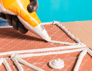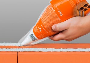 Con sólo la aplicación de dos cordones de 1 cm de diámetro cada uno, sobre los ladrillos y bloques.